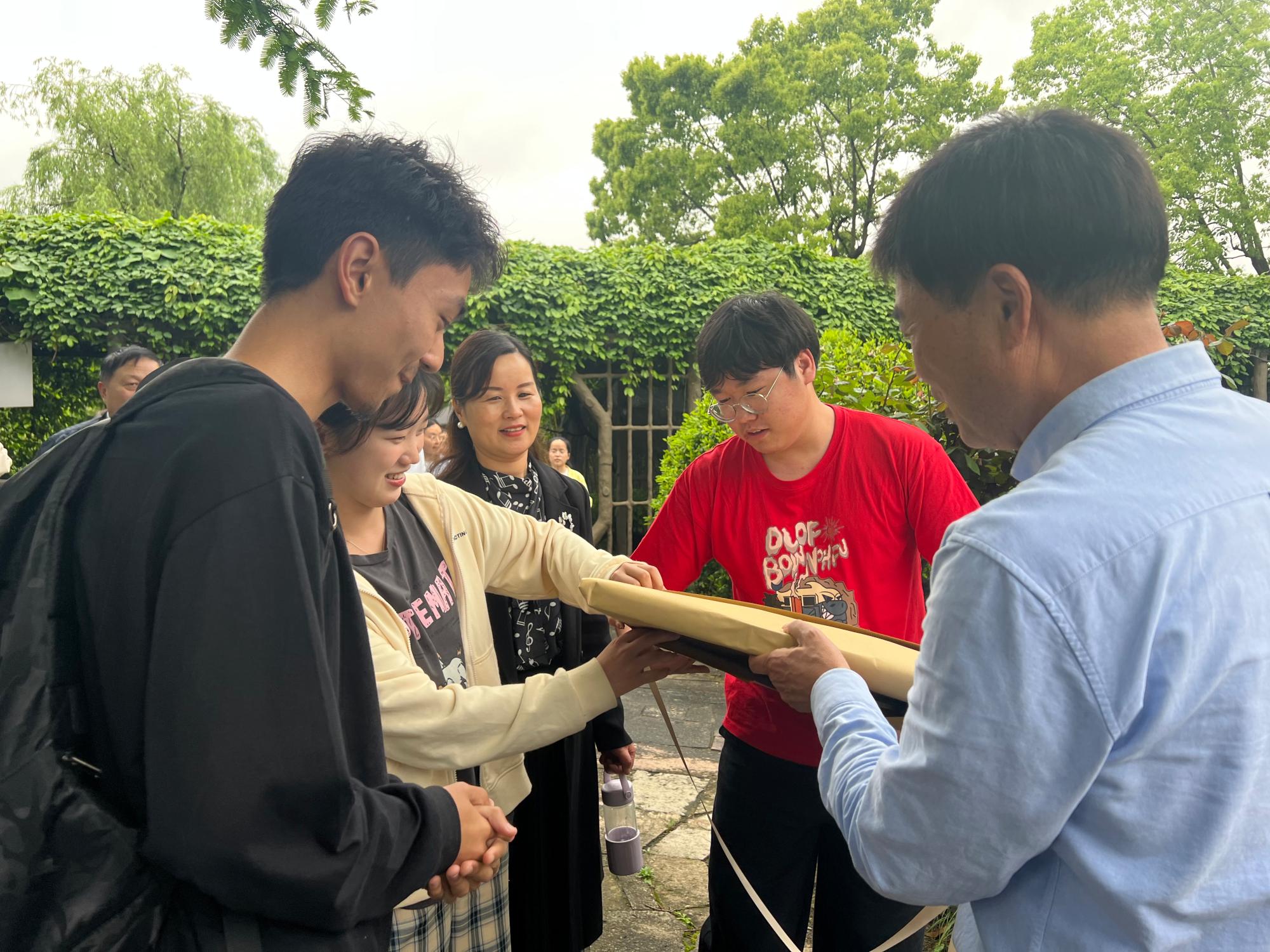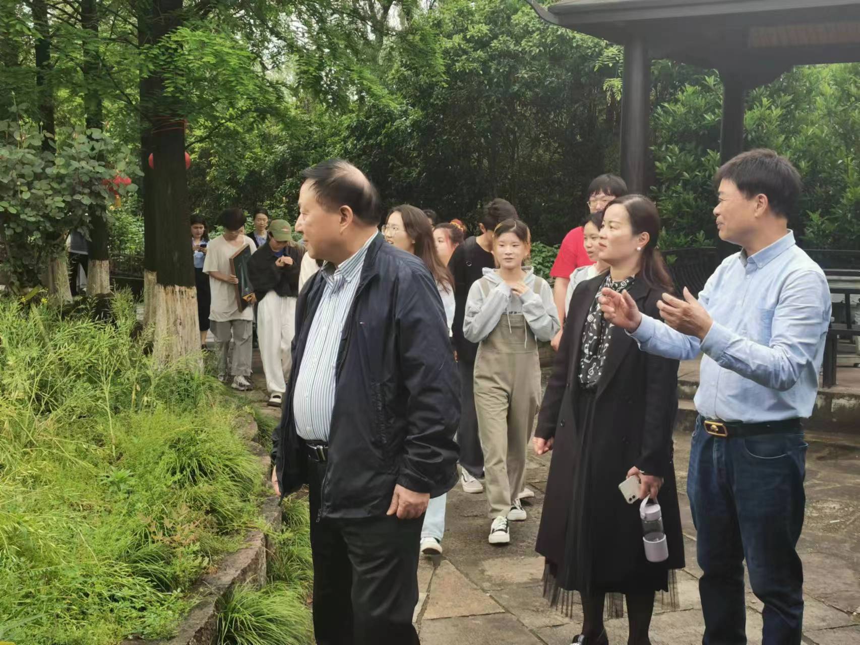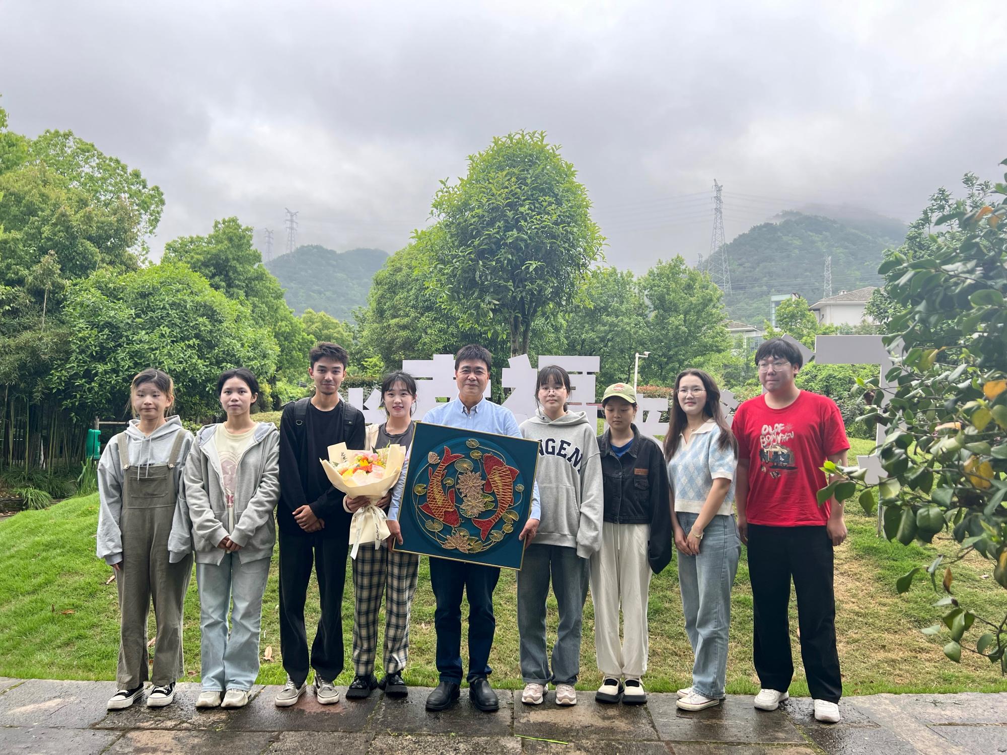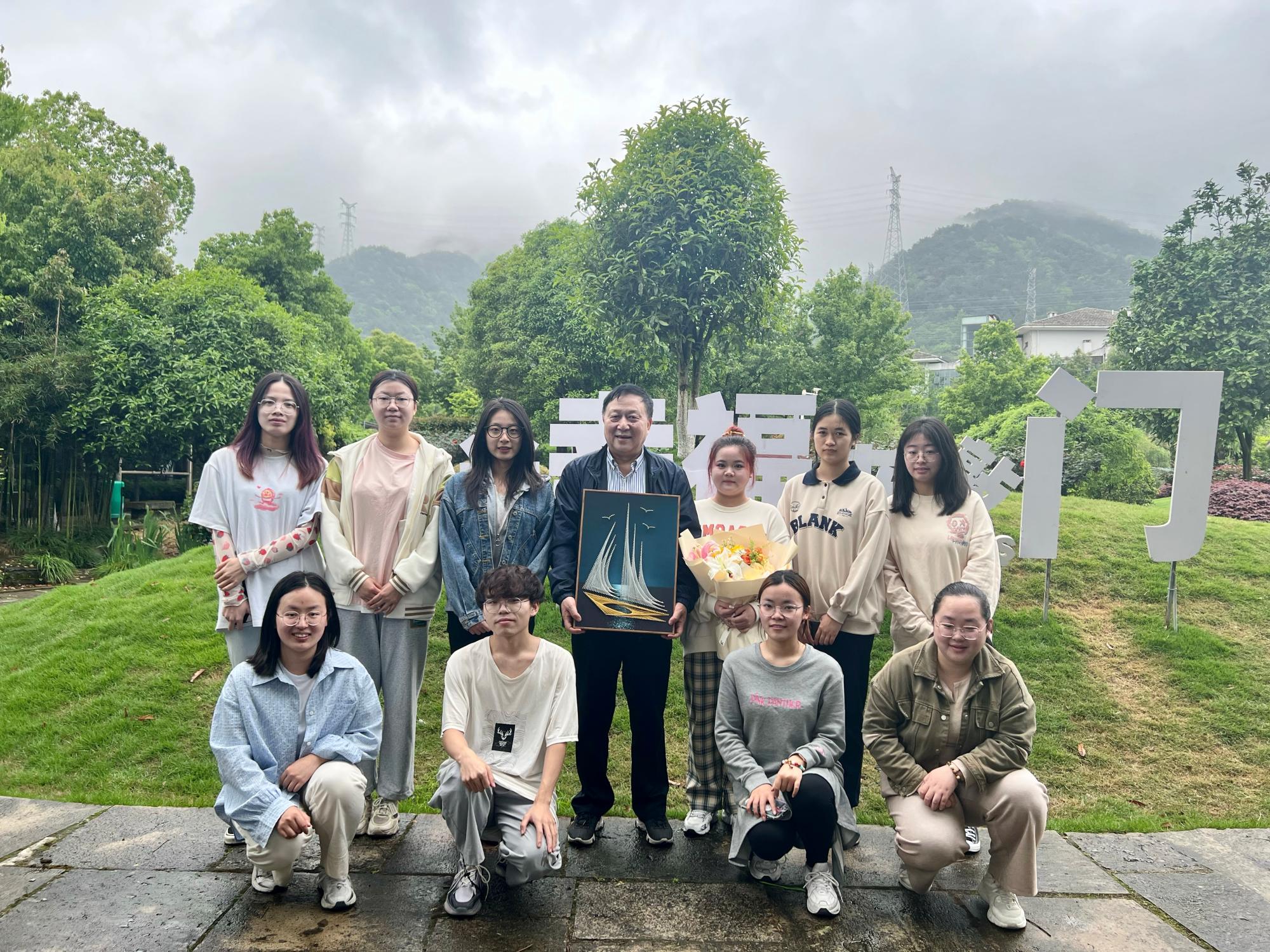 最后,贺行平及陆汉幸董事长与我院老师同学一起在北仑区牡丹园合影留念。