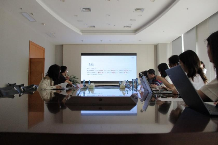 2022年9月28日,调研团队的同学们首次前往雅戈尔集团调研。与上次调研不同,这次调研同学们带着初步的研究成果而来,团队成员向雅戈尔集团领导汇报了研究成果的主要内容与核心观点,与雅戈尔服装控股有限公司营销管理部总监周波、雅戈尔集团党办主任翁珊珊进行了充分讨论与交流。