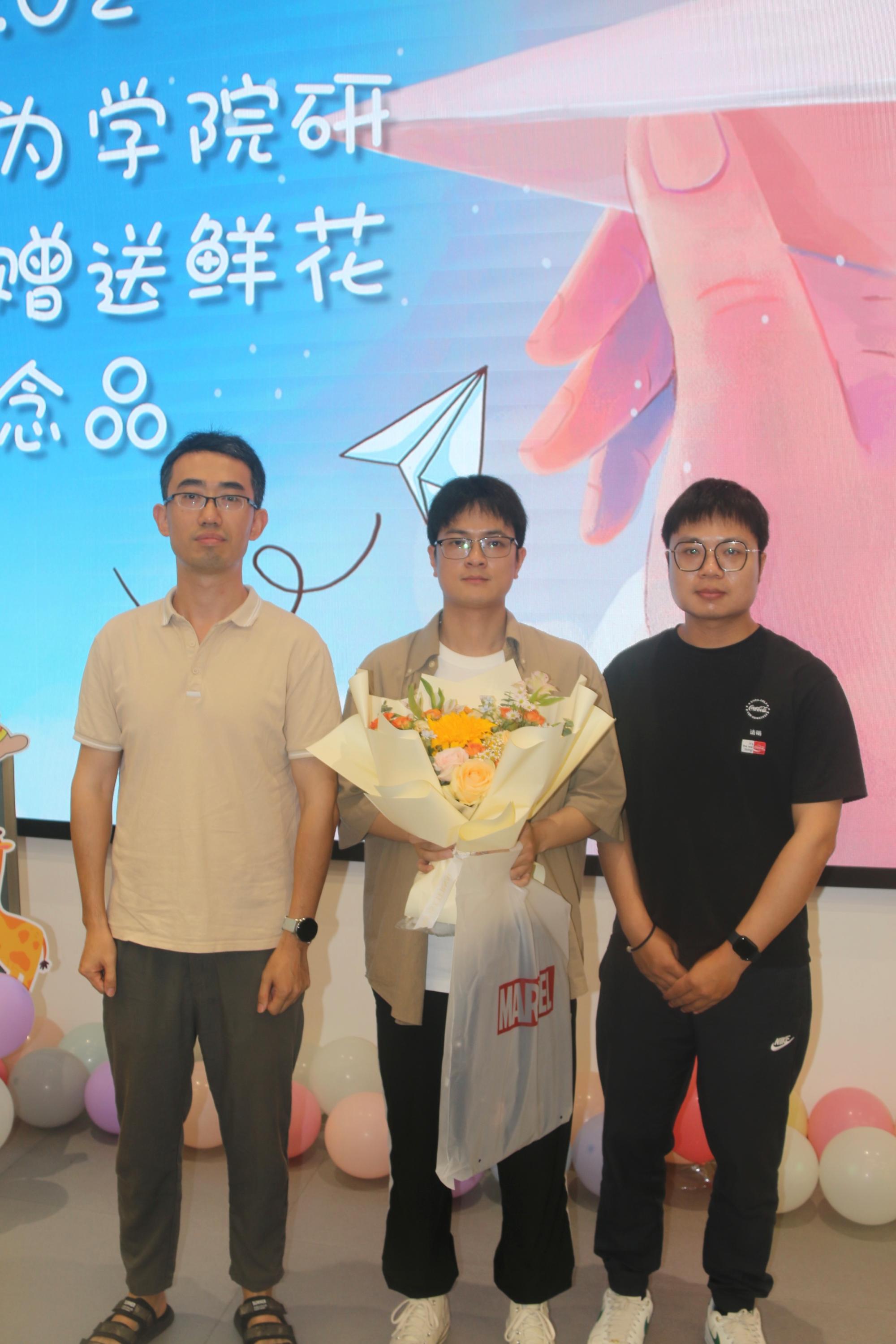 大四的虞舒寒和金鸿飞同学一毕业就将奔赴贵州支教一年,回来后再接着读研究生。在传递仪式上,他们谈了自己的支教规划和逐梦心路历程,他们的班主任和辅导员老师给他们送上鲜花和纪念品。
