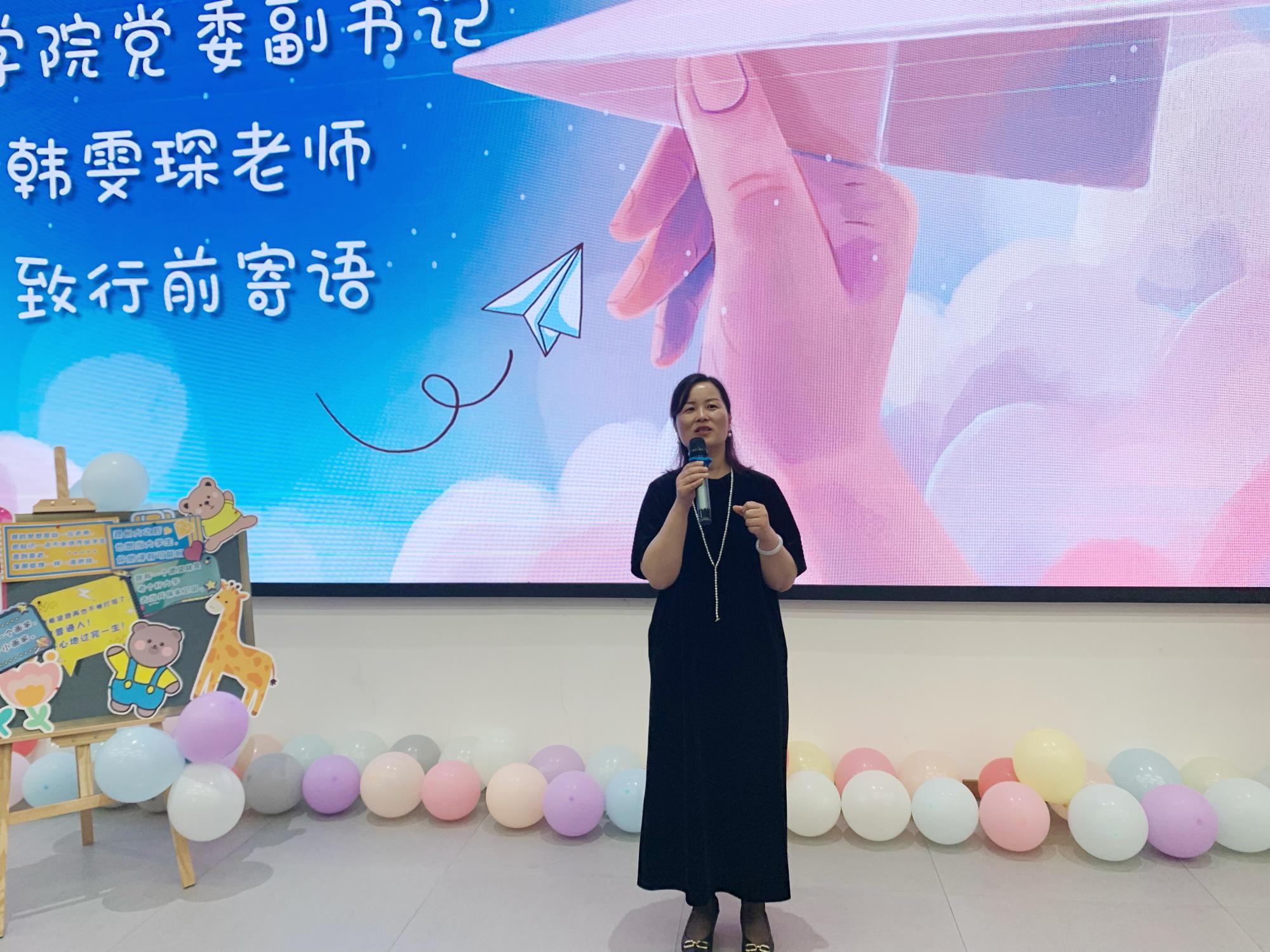 最后学院党委副书记韩雯琛向研支团成员送上行前寄语,她勉励同学们珍惜青春,奋发有为,在担当中历练,在尽责中成长,切实担负起国家强盛,民族复兴的时代重任。