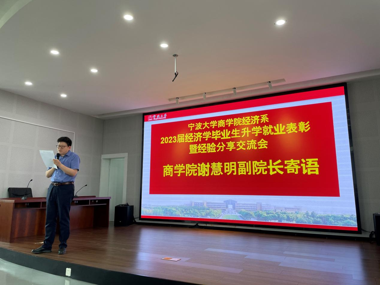 6月20日下午,经济系2023届毕业生升学就业表彰暨经验分享交流会在电竞博彩 曹光彪楼501报告厅举行。经济系主任徐群芳教授主持会议,电竞博彩 副院长谢慧明教授受邀参加,2023届经济学班主任程永毅、辅导员章舒怡、经济系部分教师、2023届经济学专业毕业生和2020级、2021级在读本科生参会交流。