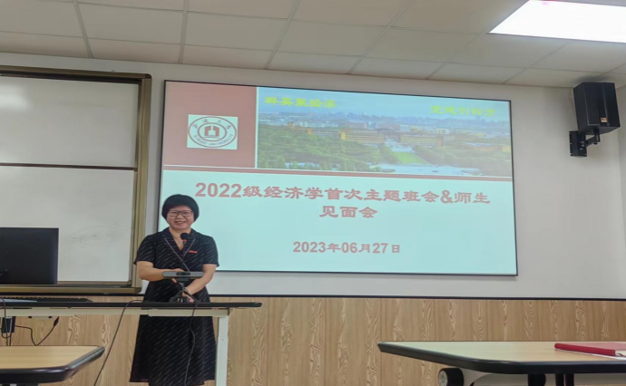 6月27日上午,经济系2022级新生见面会暨首次主题班会在电竞博彩-国内电竞博彩 314教室举行。本次会议由2022级经济学班主任黄晖副教授主持,经济系主任徐群芳教授、教学系主任闭明雄副教授、专业教师靳来群、施晟和于冰副教授以及辅导员章舒怡老师出席会议并讲话。