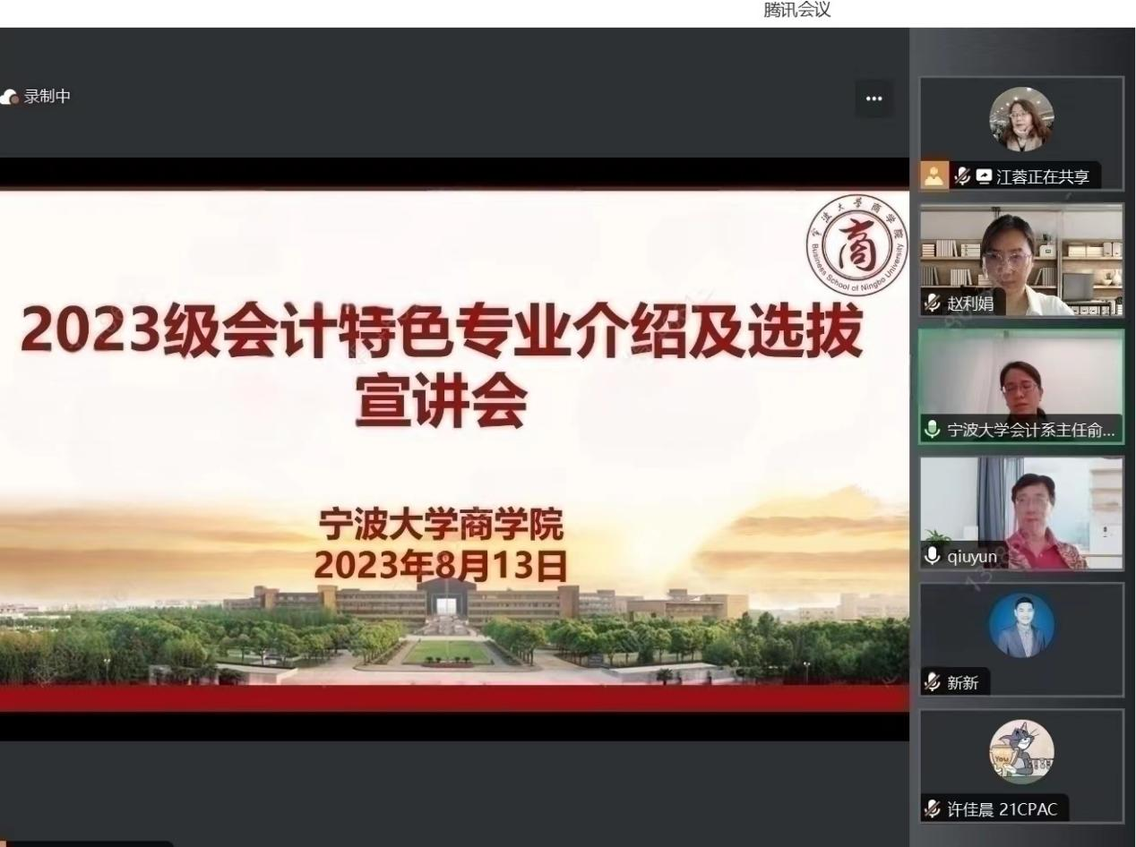 2023年6月高考结束以后,电竞博彩-国内电竞博彩 会计系陆续开展了会计学(CPA Canada)特色方向班的宣传招生工作。同时,根据《2023级会计学(CPA Canada)特色方向班选拔录取办法》文件精神和招生工作安排,于8月13日顺利召开了2023级会计特色专业介绍及选拔的线上宣讲会。
