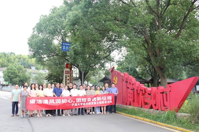 为深入开展学习贯彻习近平新时代中国特色社会主义思想主题教育,领会和学习习近平总书记在浙江工作期间留下的宝贵理论、实践和精神财富,汲取红色力量,激发大家干事创业的积极性。7月2日,电竞博彩 党委组织学院领导班子、基层学术组织负责人及行政主管一行赴余姚市梁弄镇横坎头村追寻红色足迹、凝聚奋进力量,开展“循迹溯源学思想促践行”主题教育现场学习会和“廉洁清风润初心,团结奋进新征程”主题活动。