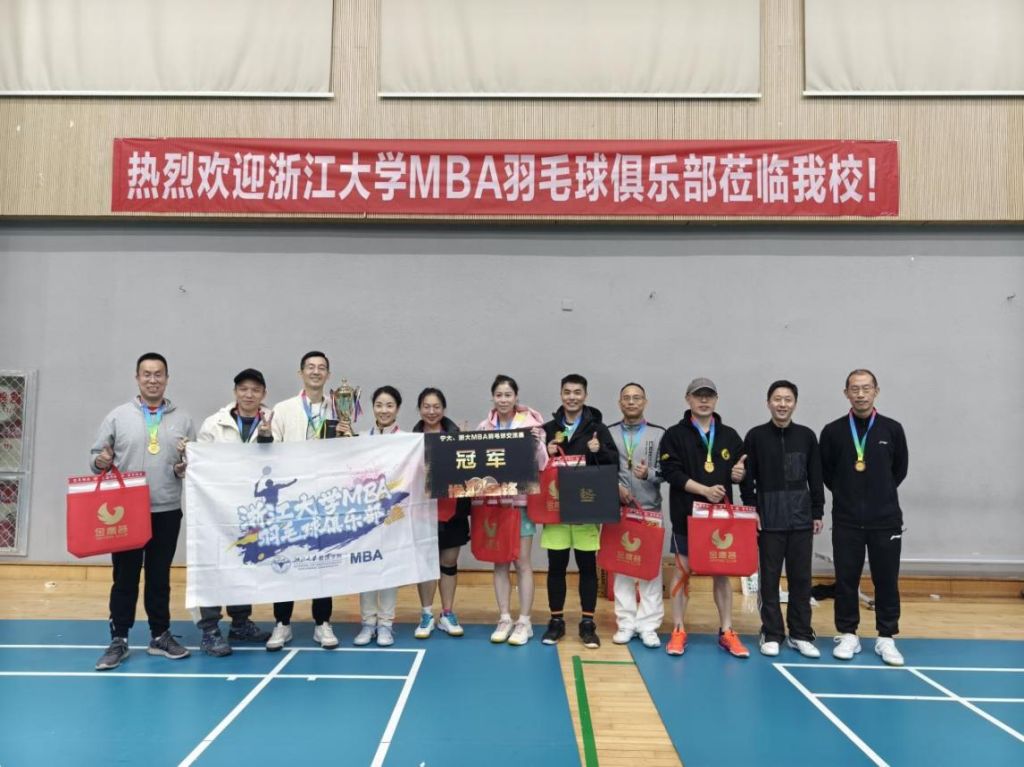 至此,宁波大学MBA与浙江大学MBA羽毛球师生友谊赛顺利结束。各参赛选手在本次比赛打出了良好的精神风貌,也结交了更多志趣相投的球友。赛后浙大MBA代表李队长对宁大MBA联合会的热情邀请表示感谢,期待后续两校MBA能进一步加强交流合作,并对宁大MBA发出邀请,明年赴杭州再次进行两校MBA羽毛球友谊赛。本次活动的顺利举办为宁波大学MBA学生与浙江大学MBA学生搭建了交流和合作的桥梁,希望未来有更多MBA学生一起融入到活动中来,精诚合作,共谋发展!
