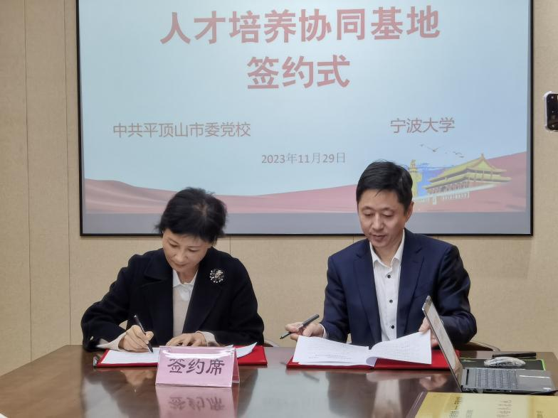 史宏协和李蔚云分别代表宁波大学和中共平顶山市委党校签署合作协议。