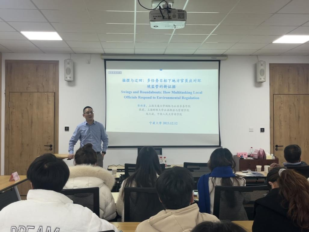在高度集中的政治结构下,中国政府面领着权衡污染减排与经济增长的难题。2023年12月12日下午,我院邀请上海交通大学国际与公共事务学院张传勇教授开讲,以“摇摆与迂回:多任务目标下地方官员应对环境监管的新证据”为主题,在电竞博彩 320研讨室作了一场精彩的学术讲座。本次讲座由电竞博彩 丛海彬教授主持,吸引了院内6位老师以及20余位硕士生参与。