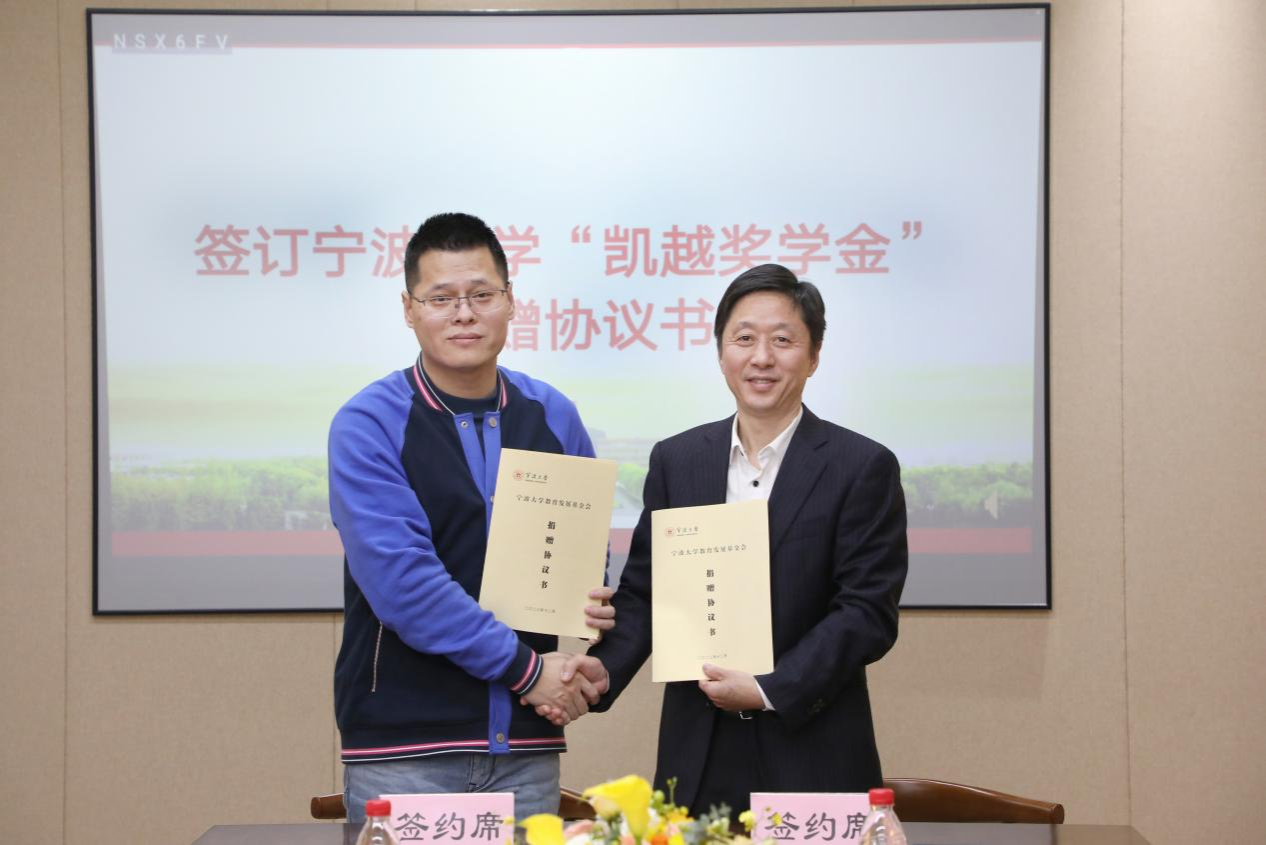 随后,史宏协书记和朱吉先生签署了宁波大学“凯越奖学金”的捐赠协议书,标志着双方合作关系的进一步加强。韩雯琛副书记向朱吉先生赠送了捐赠证书和学院纪念品——一艘镶嵌美玉的帆船,表达了电竞博彩-国内电竞博彩 对凯越集团慷慨捐赠的感激之情。