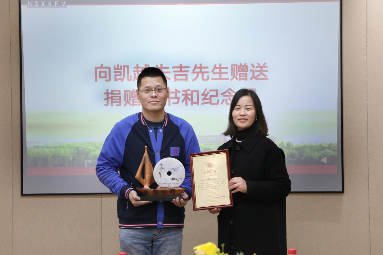 为表达商院学子的感激之情,凯越获奖学生组织代表华安琪和梅依琳向凯越集团总裁助理朱吉先生赠送感恩礼物,手作礼物代表着获奖学子满满的感谢之情,帆船之型也预祝着凯越集团业务能够乘风破浪。