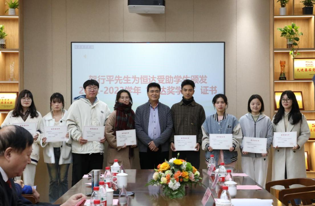 会议开始,主持人介绍出席仪式的领导和嘉宾,通过短片回顾了陆董、贺董和赞助学生的点点滴滴,并介绍宁波大学“宏达奖助学金”“恒达奖助学金”项目概况。由学生发展与服务处副处长朱燕宣读2022-2023学年“宏达奖学金”“恒达奖学金”获奖名单,陆汉幸先生、贺行平先生为在场获奖学生颁发“宏达奖学金”“恒达奖学金”证书。