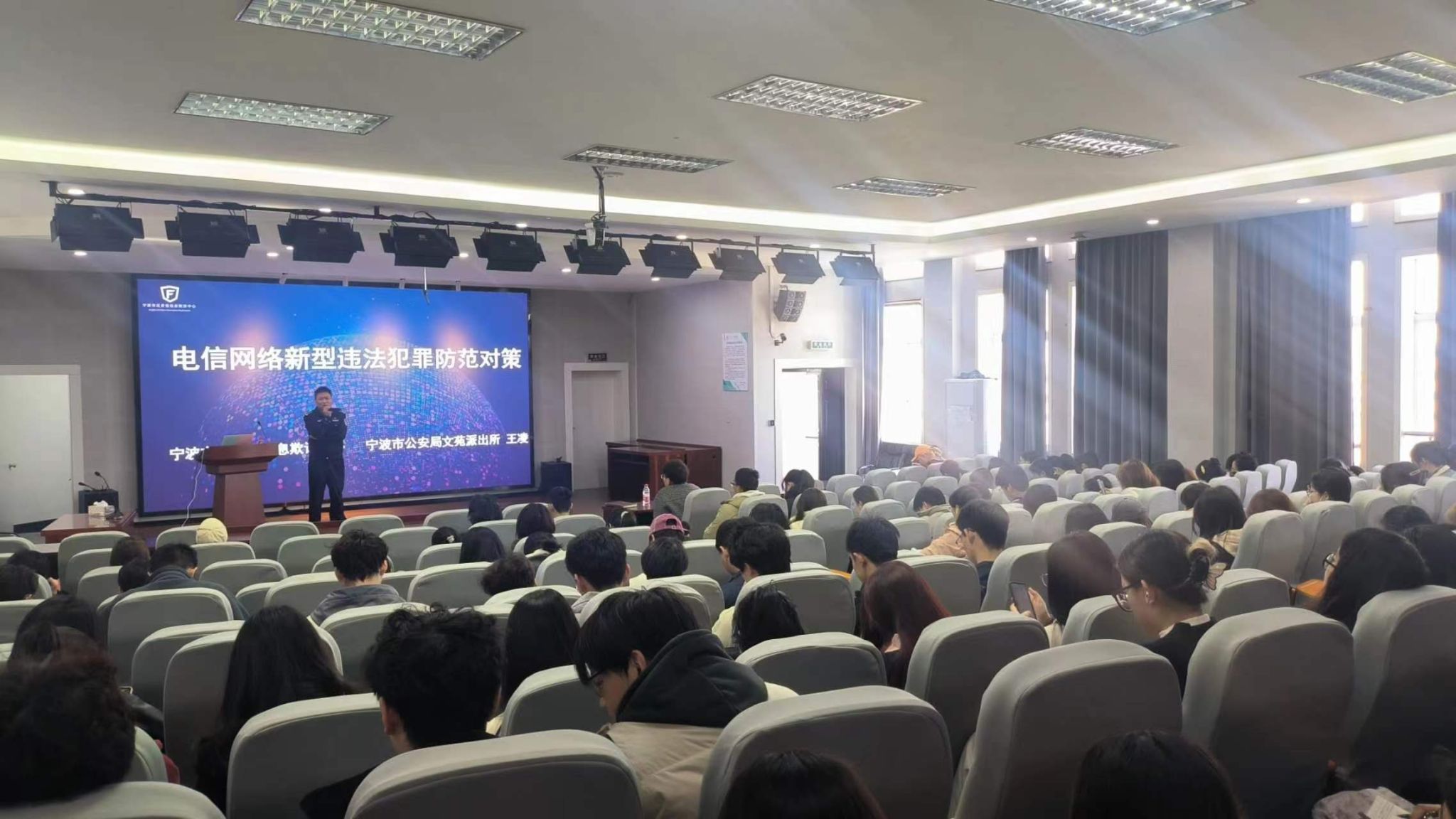 3月20日,我院商院青年大讲堂第98期防诈主题讲座在学院501报告厅顺利举行。本次讲座邀请了宁波市公安局文苑派出所王凌警官为我院140余位学生做题为“关于电信网络新型违法犯罪防范对策”的主题教育。讲座由学工办主任陈彬主持。
