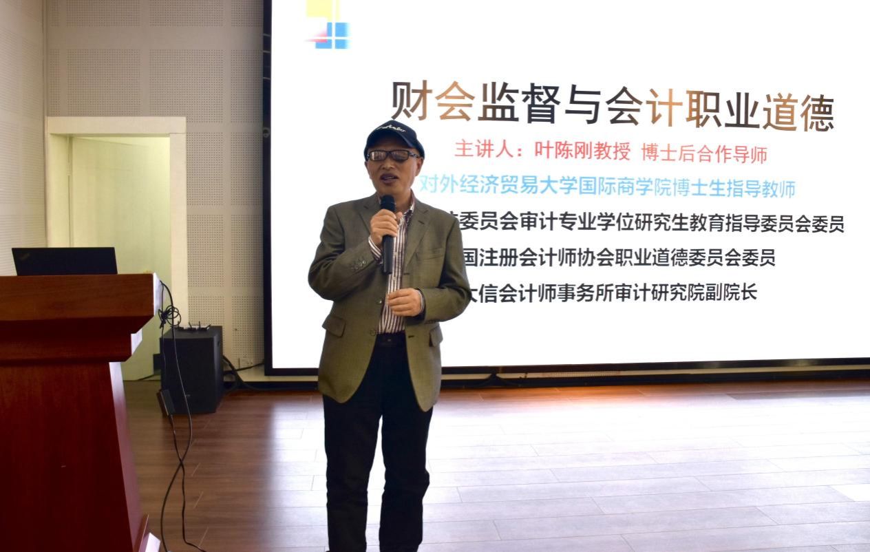 4月16日下午,宁波大学研究生创新创业论坛第178讲在曹光彪楼501报告厅隆重举行,本次论坛由电竞博彩 承办,邀请对外经济贸易大学博士生导师叶陈刚教授主讲,论坛的主题为《会计监督与职业道德》,会计系于瑾滔主持讲座,近百名师生参加了此次论坛。