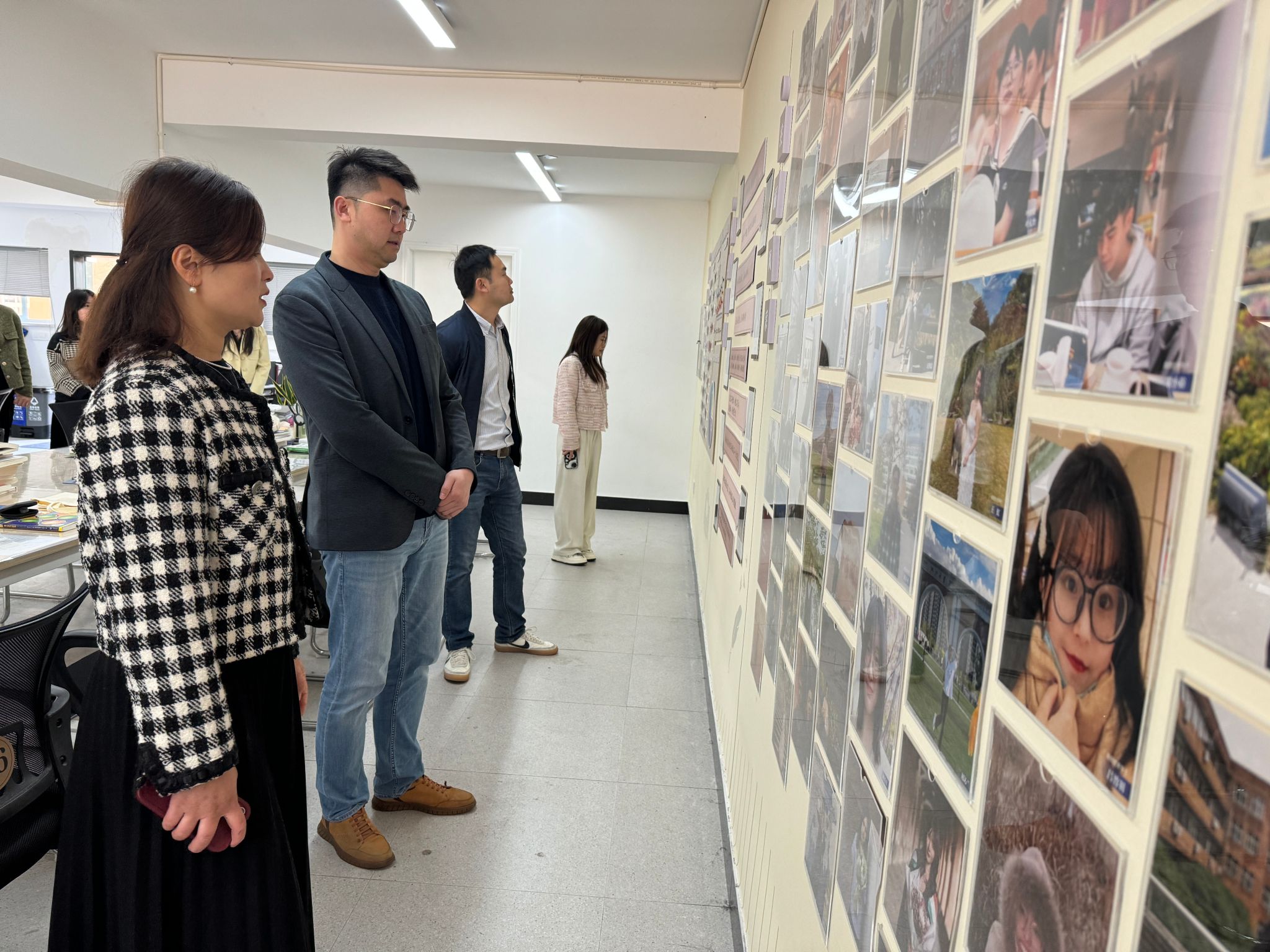 在韩雯琛的带领下,傅琪一行人参观我院“清风长廊”、共“商”青春心理工作室、共“商”未来生涯工作室、学生自习室。