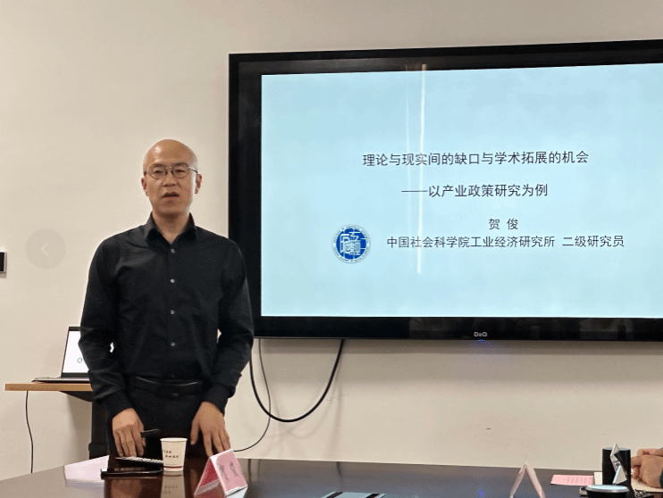4月26日下午,中国社会科学院工业经济研究所贺俊研究员受邀在电竞博彩 214室为我院师生开展了题为“现实与理论间的缺口与学术拓展机会:以产业政策研究为例”的学术讲座。讲座由学院副院长彭新敏教授主持,20余位师生参加。