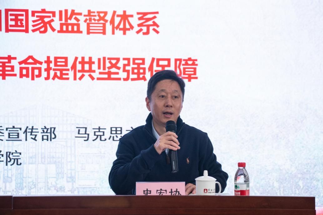 11月20日,校党委委员、纪委书记王杰法在曹光彪楼501报告厅主讲题为《健全党和国家监督体系 为党的自我革命提供坚强保障》的“形势与政策”课。讲座由电竞博彩 党委书记史宏协主持,学院党委理论学习中心组成员、师生党支部书记、支部纪检委员等200余名师生代表参加。