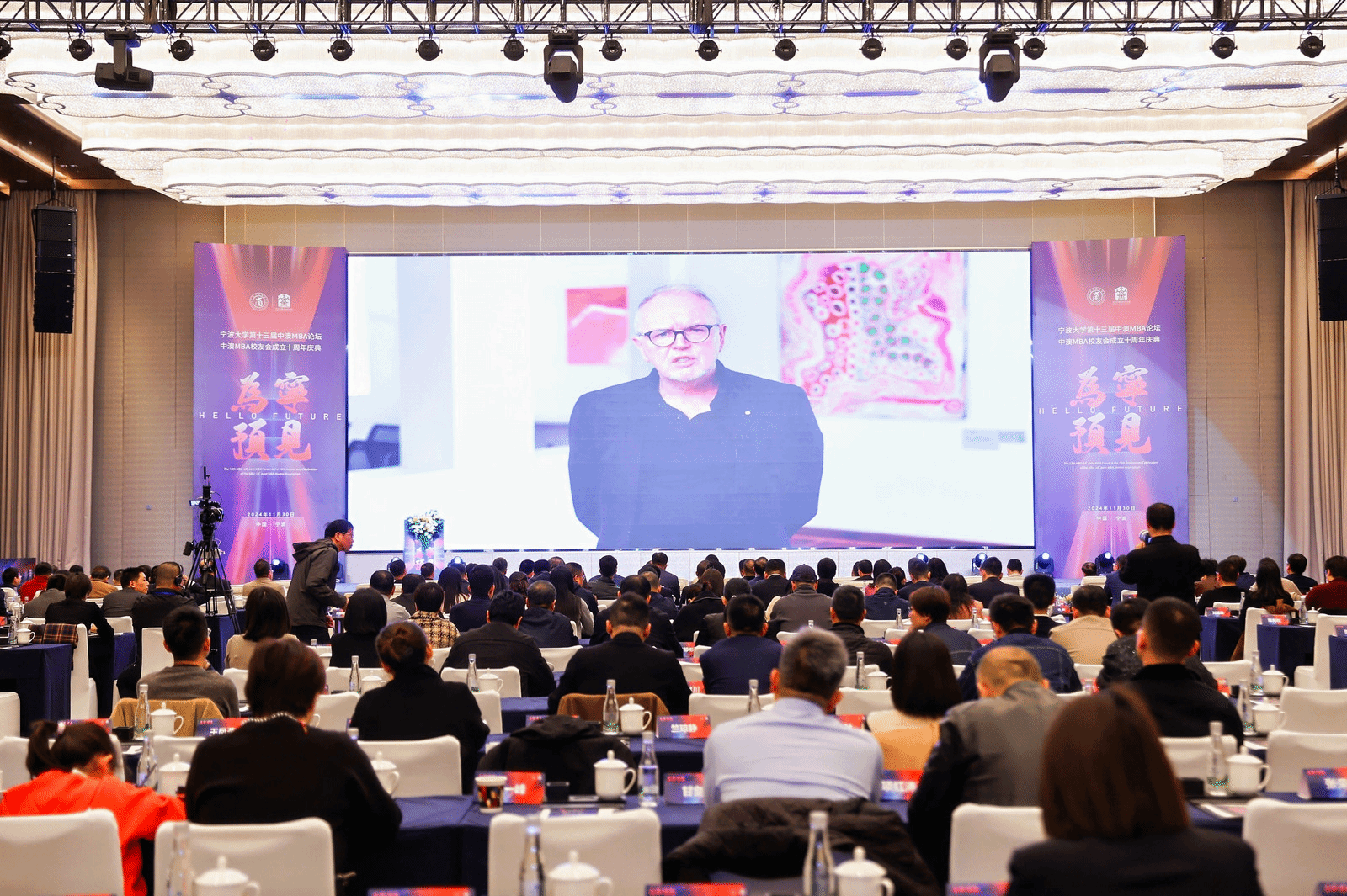 澳大利亚堪培拉大学校长Stephen Parker教授通过视频致辞,欢迎与会嘉宾和校友的到来,并高度赞扬了宁波大学与堪培拉大学之间长期而成功的合作关系。Stephen教授提到,宁波大学中澳MBA项目为社会培养了一大批具有全球视野和影响力的领军人物。这一项目教授学生们独特的学科和专业知识,同时提升了毕业生们在全球工作环境中取得成功的能力。他认为宁波大学中澳MBA校友会不仅通过论坛等活动支持校友的职业发展,还积极回馈社会。最后,他向宁波大学及所有校友致以最诚挚的感谢,并祝愿两校未来的合作更加繁荣。