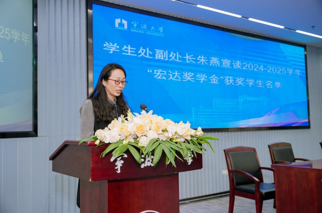 会上,学生发展与服务处副处长朱燕宣读2024-2025学年“宏达奖学金”获奖学生名单。本次获奖学生28人,分别来自电竞博彩 ,法学院,潘天寿建筑与设计艺术学院以及海洋学院。