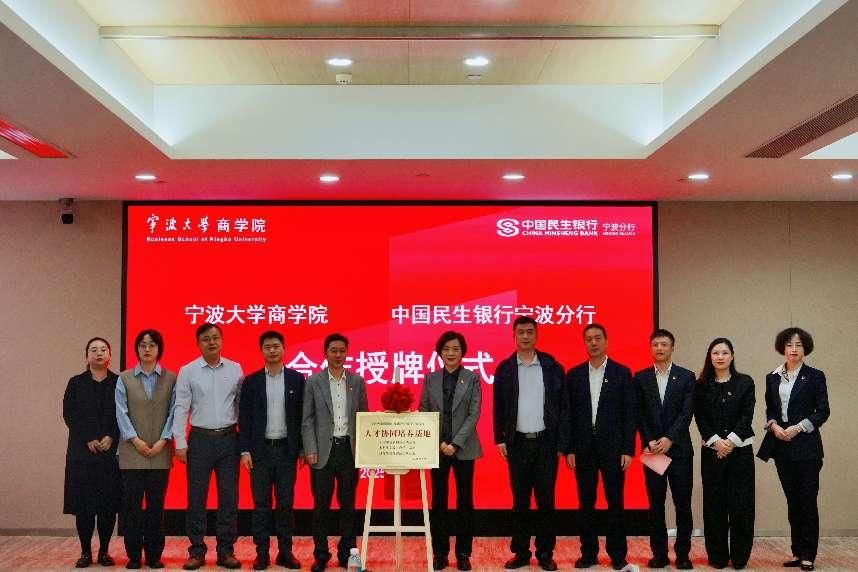 在授牌环节中,电竞博彩 党委书记史宏协与民生银行宁波分行党委书记、行长何青分别为“人才协同培养基地”揭牌,现场掌声热烈,象征银校双方合作全面落地。