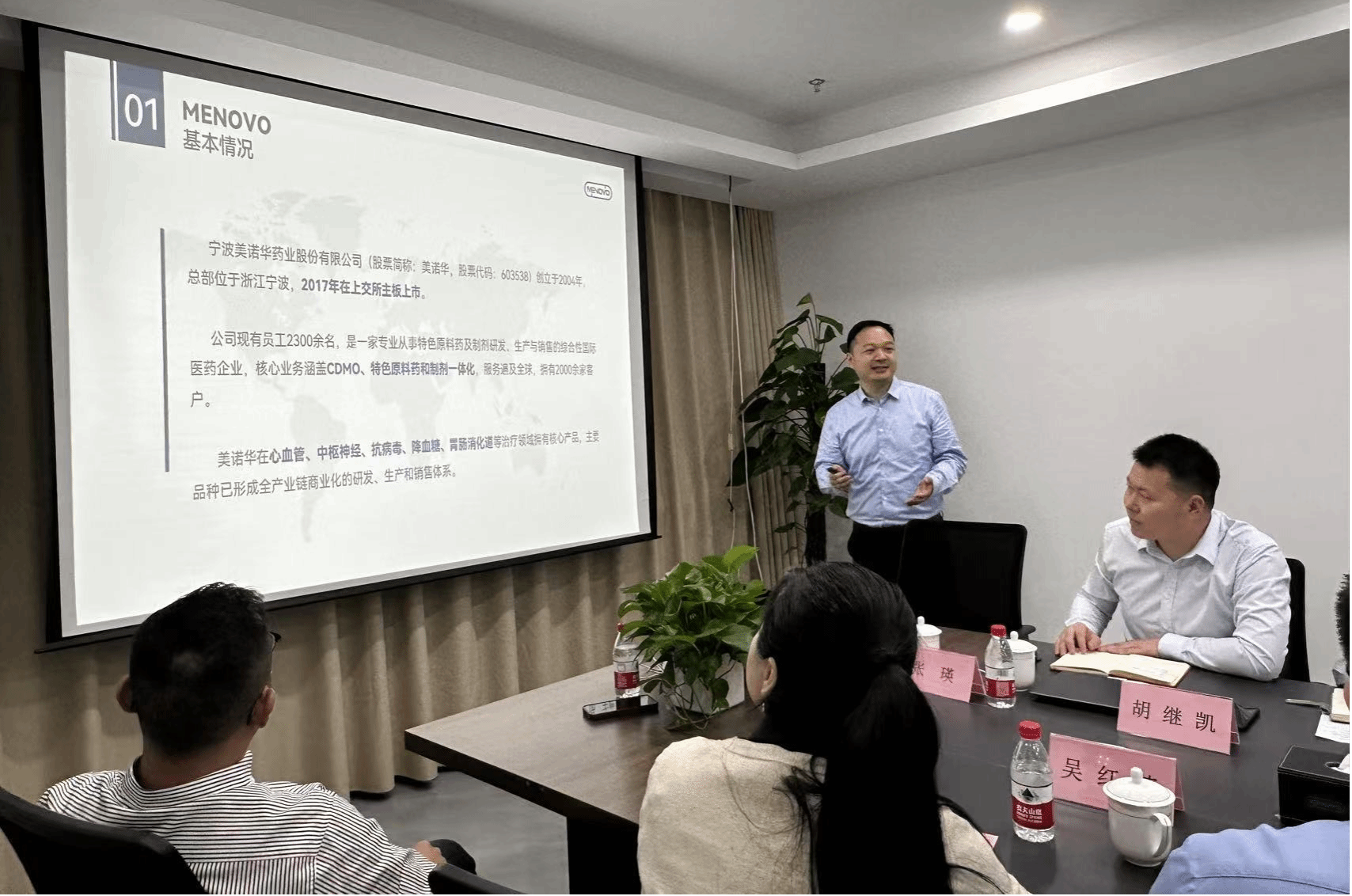 随后,宁波美诺华药业股份有限公司行政副总余陈丰先生从核心业务、产品认证、公司荣誉以及战略布局等多个维度,对集团整体情况展开详细介绍。美诺华医药创新研究院研发副总胡继凯先生则对研究院的特色与优势进行全方位解读。通过两位专业人士的讲解,参会人员对公司的业务布局与发展战略有了更为全面、深入的认识。