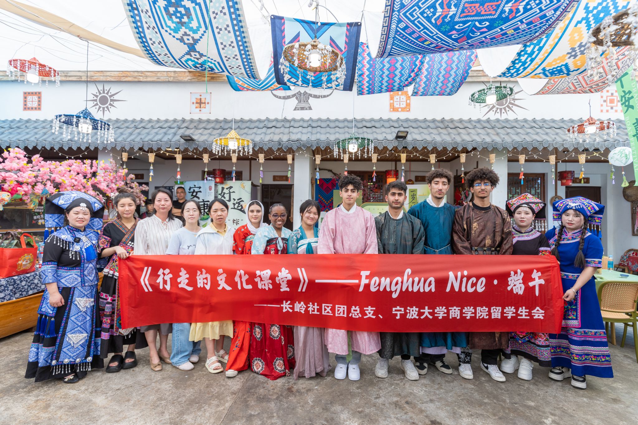 5月22日上午,奉化区锦屏街道桃家寨人头攒动,2025“Fenghua Nice·端午”主题活动在此开展。七彩粽、做香囊、壮族迎门酒、竹竿舞,电竞博彩 中外学子同当地村民在一片欢歌笑语中喜迎端午。