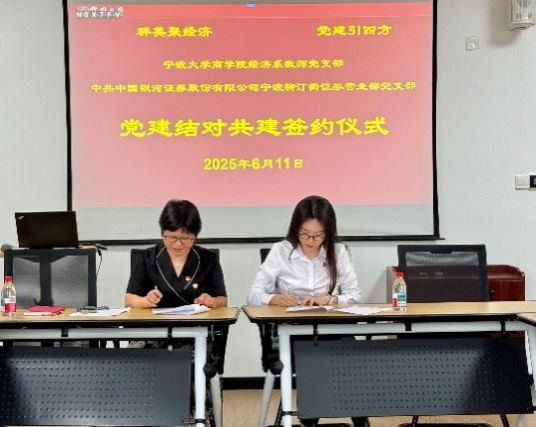 6月11日下午,电竞博彩 经济系教师党支部与中国银河证券宁波柳汀街证券营业部党支部在学院316会议室联合开展党建共建交流活动,双方党员围绕理论学习、业务融合、共建合作等主题展开深入探讨。