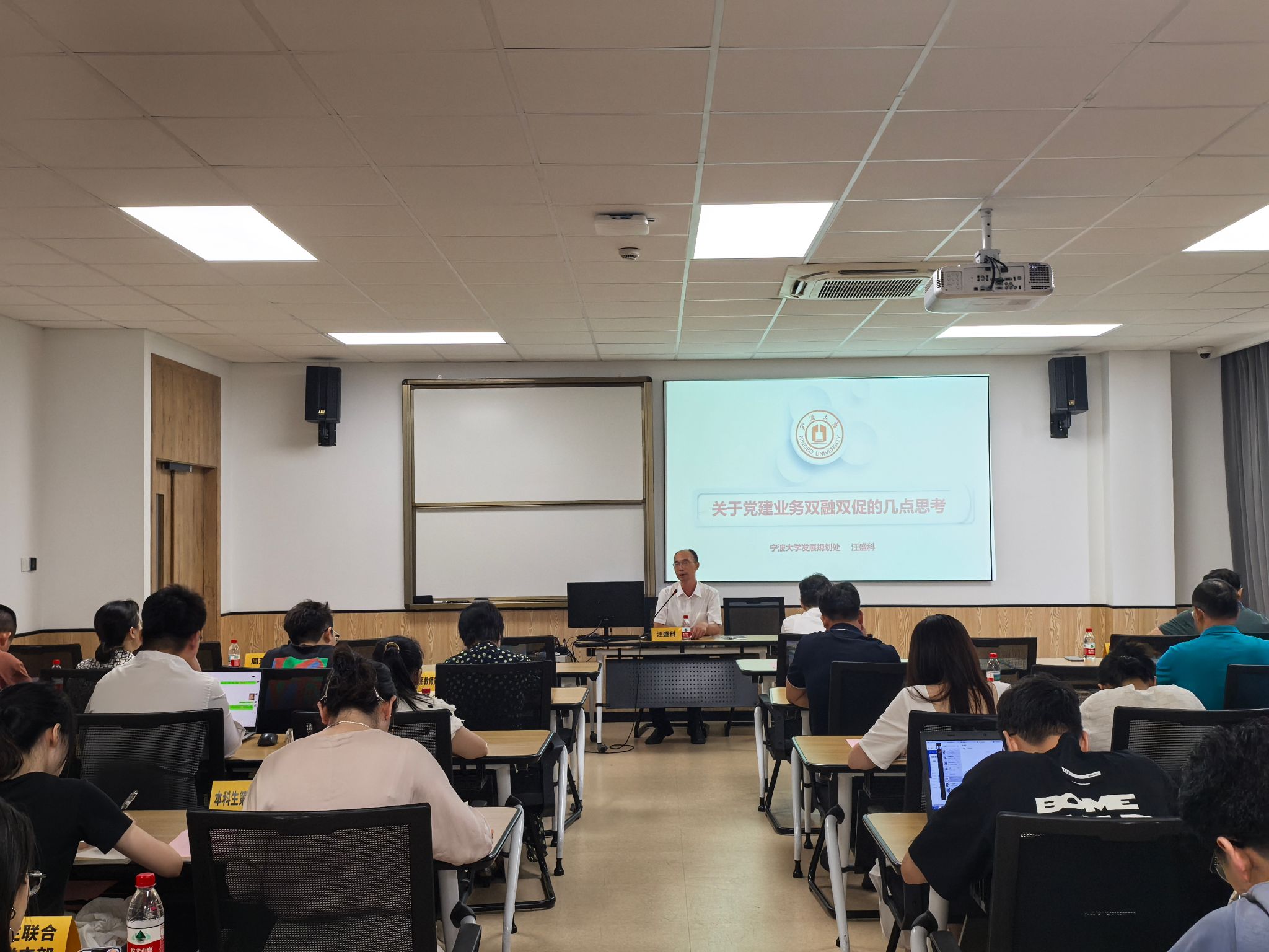 9月10日,电竞博彩 在曹光彪楼314教室召开基层党支部书记例会暨专题培训会,会议由院党委书记史宏协主持,邀请校发展规划处处长汪盛科作专题培训辅导,全体师生党支部书记及支委委员近50人参加。