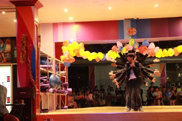 一段热舞拉开了晚会的序幕,成功地点燃了全场热烈的气氛,镁光灯将整个舞台照得如同梦幻一般;古筝“春到拉萨”完美地诠释了中华神韵,使在场观众沉醉于温情柔美的画面之中;而黄梅戏《女驸马》则让我们感受到了中国古典文化的博大精深、源远流长,使我们为之自豪;一首汪国真的《热爱生命》在四位同学的朗诵声中娓娓道来,铿锵有力的声音唤醒了我们沉睡已久的梦想,让我们再一次说出了“既然目标是地平线,留给世界的只能是背影”这样的豪言壮语。紧接着,我们进入了游戏环节,一个小游戏彻底带动了同学们的激情,而穿插在晚会中的抽奖环节也充分活跃了全场的气氛。游戏过后,一段口琴伴奏的舞蹈《时间煮雨》让人回味无穷,那曼妙的舞姿使人久久不能忘怀;而学长学姐们的歌曲《无言》和《I kissed a girl》则给我们带来了不一样的听觉冲击。最后的兔子舞则以轻松愉快的节奏引起全场的欢呼。