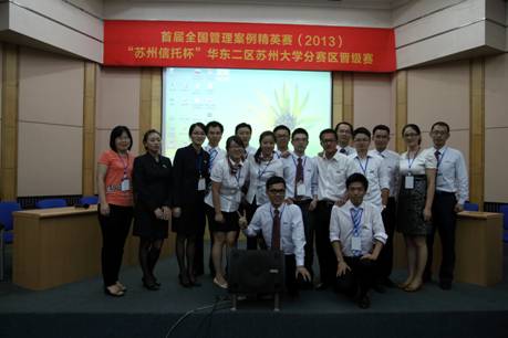 7月6日,首届全国管理案例精英赛(2013)华东二区苏州大学分赛区晋级赛,在苏州大学进行。来自国内的浙江大学、宁波大学、上海理工大学、苏州大学等7所院校10支代表队参赛。