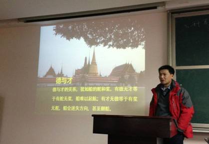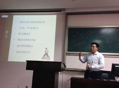 2013年12月8日晚,电竞博彩 第十四期业余团校选修模块一之“往昔学干精英,今朝职场新人” 大学生职业生涯规划交流会在电竞博彩 418教室举行。