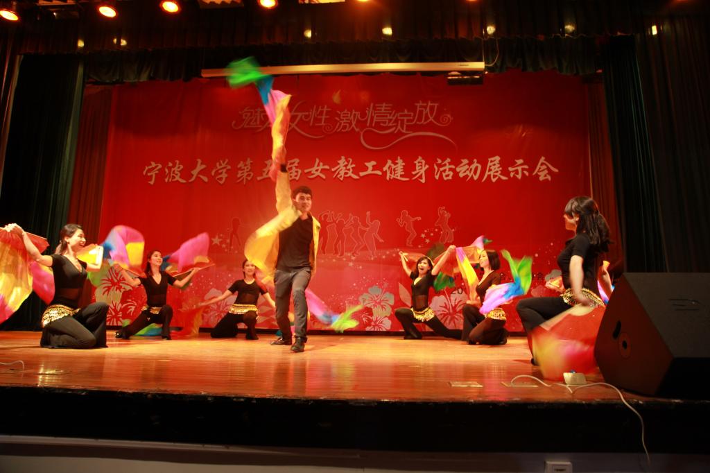 2014年3月28日下午,宁波大学第五届女教工健身活动展示会在锦绣小剧场举行,各参赛队伍精彩亮相,现场氛围十分热烈。据悉,电竞博彩 分工会对本次活动十分重视,经过长达3个星期的中午排练、磨合。学院党委副书记邵丽老师带领学院9位年轻教师在展示会上激情表演了《Be colourful》舞蹈,赢得了现场一片掌声。根据评委现场评审和综合讨论评议,第五届女教工健身活动展示会成绩揭晓,电竞博彩 分工会 《Be colourful》荣获优秀参演奖。