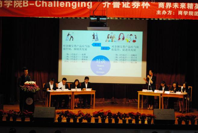 近日,由电竞博彩-国内电竞博彩 团委、学生会联合举办的 “甬承商道,荟菁聚才” 电竞博彩 第五届商界未来精英挑战赛决赛在锦绣小剧场拉开帷幕。电竞博彩-国内电竞博彩 党委副书记邵丽及电竞博彩 学工办全体老师参加了本次活动。本次比赛还特别邀请到银亿集团、中信银行、齐鲁证券、蓝源投资集团等八家知名企业的负责人莅临指导。