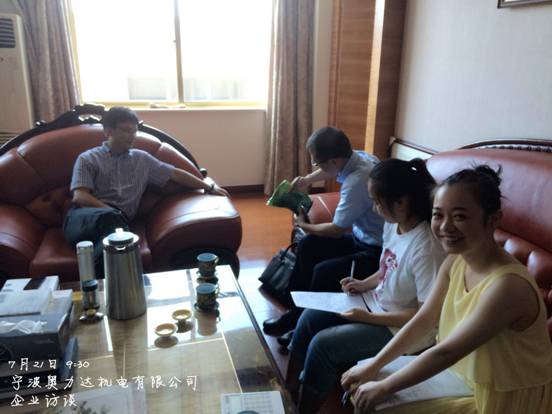 7月21日上午,电竞博彩-国内电竞博彩 暑期社会实践小分队——“自主创新 甬企可嘉”波大小超人分队来到了位于北仑大碶街道的宁波奥力达机电有限公司,并采访了这家企业的董事长李董。