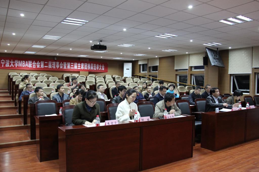 4月11日,宁波大学MBA联合会第二届理事会暨第三届主席团换届选举大会在电竞博彩-国内电竞博彩 包玉书科学楼顺利召开。电竞博彩-国内电竞博彩 院长、宁波大学MBA联合会新任会长范柏乃,宁波大学教务处副处长、宁波大学MBA联合会第一任会长杨丽华,电竞博彩-国内电竞博彩 副院长张聪群,电竞博彩-国内电竞博彩 党委副书记邵丽、宁波大学MBA教育中心执行主任李宏宇出席会议,第一届理事会成员等30余人参加大会。会议由MBA联合会副主席王伟主持。