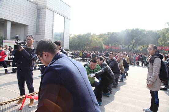 2014年12月29日中午,宁波大学教职工新年拔河比赛在安中大楼门口广场举行。学院分工会主席李浩明老师组织邵丽﹑伍湘陵﹑陈彬﹑毛孟凯﹑朱福建﹑邓启明﹑郑建华﹑武建章﹑李永涛﹑冷军﹑郑凌燕﹑傅梅﹑王凡等13位老师参加,因实力悬殊,最终不敌教师教育学院队。