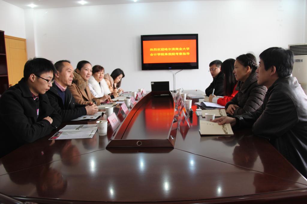 会上,两位副书记就两校和所在学院发展历史、管理体系与组织架构做了简要介绍,随后,双方围绕本次调研主题就会计专业教学、学生工作管理体系建设、人才培养模式做了深入交流,并着重探讨了彼此关心的课程建设、实践教学、学生组织建设、就业工作、学风建设。哈尔滨商业大学会计学院党委刘副书记对我院的热情接待表示衷心感谢,希望与我院建立长期友好交流互助关系。