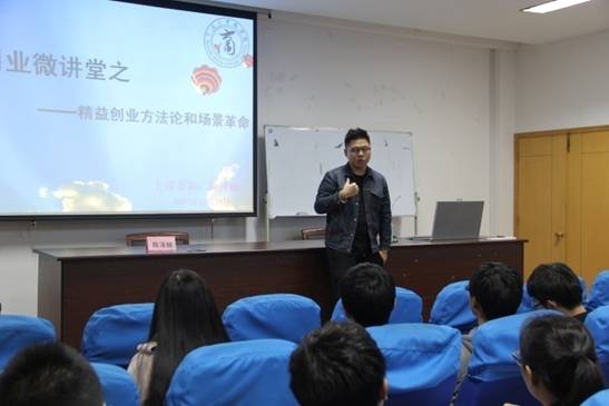 11月18日,电竞博彩 创业微课堂之“精益创业方法论和场景革命”在电竞博彩 414顺利开讲。本讲邀请了Uber宁波市场部专员陈泽楠担任主讲嘉宾,电竞博彩 80余名学生参加了本次活动。