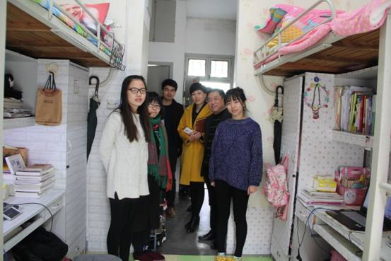 在走访过程中,熊书记详细询问了同学们在寝室学习生活中遇到的困难和问题,就同学们期末复习和毕业班同学就业求职问题给予关心和指导,并耐心听取同学们对学院在学生学业指导、生活帮助、求职就业指导、文明寝室建设等工作上意见和建议。同时,他也对同学们寝室日常卫生和安全工作提出了要求,他强调“一屋不扫何以扫天下”,鼓励同学们“把寝室当成自己的小家”,坚持做好寝室内务整理,“从叠被子的小习惯中锻炼自己的意志”,他也结合自己生活小习惯给同学们分享“生活中养成的好习惯有助于提高学习工作效率”的心得体会。