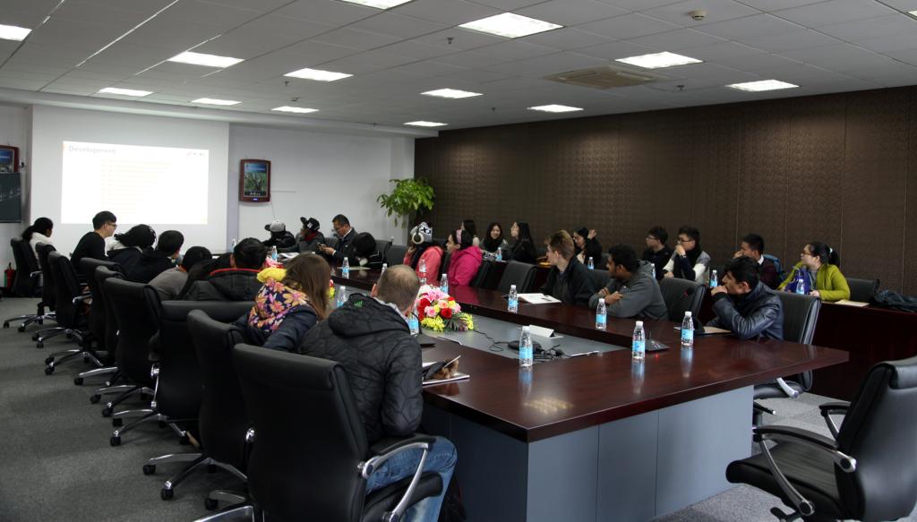 在赛尔总部的大会议室里,企业的业务员,同样毕业于宁波大学外语系的钱青,向在场的留学生们做了精彩详细的企业发展历史及现况介绍。在这里,留学生们对赛尔企业的发展、电竞博彩建设,有了更加深入全面的认识。看到同样毕业于宁大的优秀人才在这里获得进一步的锻炼平台和成长机会,学生们都纷纷流露出赞许的神情。在聆听过程中,留学生们还积极思考,针对不同方面现场提问,同企业人员展开友好的探讨与交流,也表现出对赛尔集团的兴趣与热情。