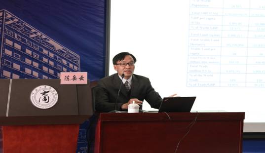 2016年3月16日(星期三)下午14:30,美国洛杉矶西来大学教授、财务长陈岳云教授莅临我校,为校内师生做了一场题为“全球化,中国发展与商业模式”的学术报告。电竞博彩 副院长杨丹萍教授主持了本次报告,来自电竞博彩 、理学院的百余名师生聆听了报告。