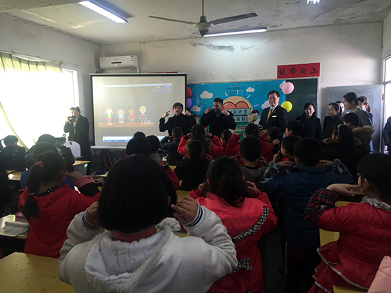 上午9点,电竞博彩 志愿者代表和酒店方一同抵达江北采文学校。酒店总经理彼得潘在现场发表了热情洋溢的讲话。随后,电竞博彩-国内电竞博彩 的辅导员也向同学们介绍了两位留学生志愿者老师。