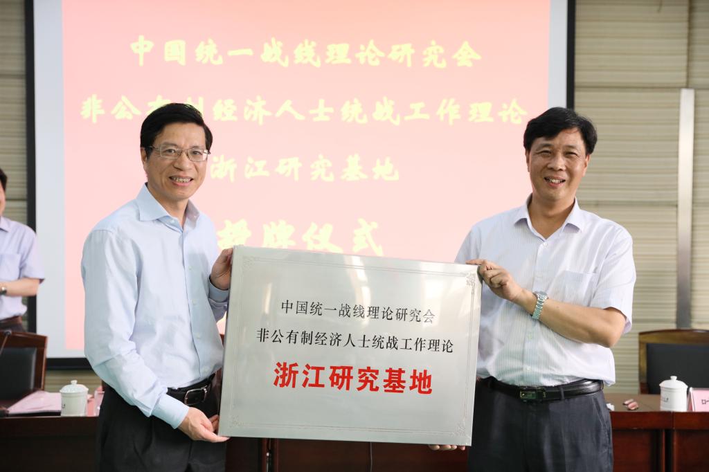 中央统战部研究室副主任章建敏宣读《关于同意中国统一战线理论研究会非公有制经济人士统战工作理论浙江研究基地设在宁波大学的批复》。中央统战部研究室主任张健为基地授牌。