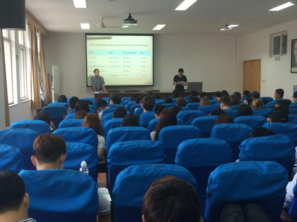 2016年9月11日,由邵丽老师指导,学工办留学生组发起组织的电竞博彩-国内电竞博彩 留学生新生见面会在电竞博彩 414顺利举行。毛跃祖,蒋鹏涛,袁丹丹,马永斌和王小西老师和2016级全体留学生新生(包括MBA)共同参与了此次会议。会议由毛跃祖老师主持。