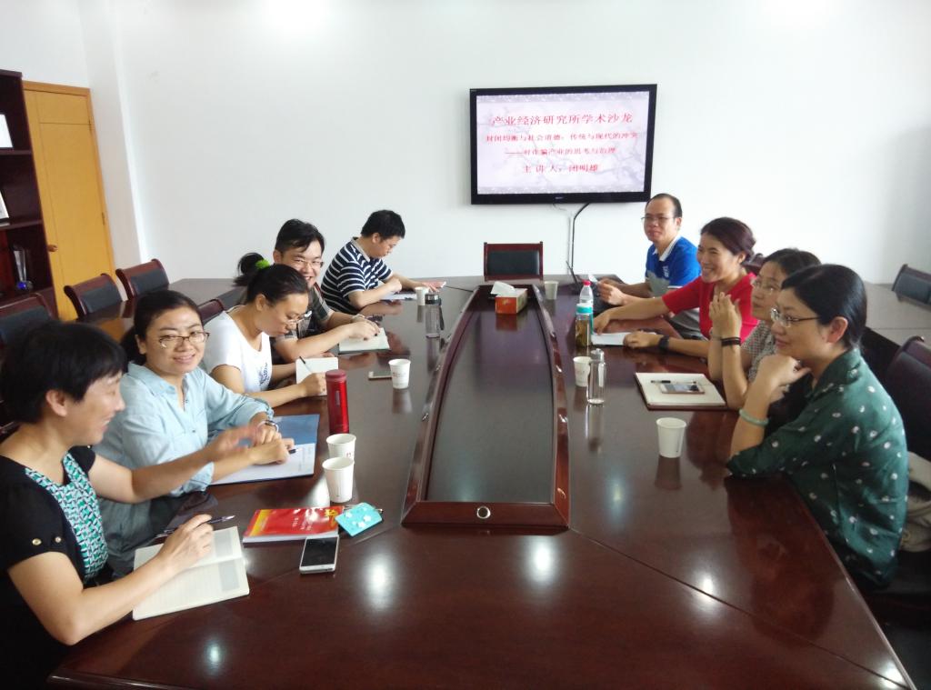 2016年9月28日上午8点,电竞博彩 学术沙龙(2016年第6期)在11#412会议室如期举行。学术沙龙由产业经济研究所所长胡求光教授主持,产业经济研究所闭明雄博士做了精彩的学术报告。电竞博彩 副院长杨丹萍教授、产业经济研究所教师和部分同学参加了此次学术活动。