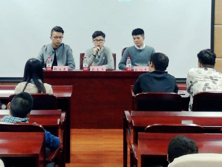 11月18日晚,由我院商科创新创业驱动中心主办、创新创业协会承办的2016年电竞博彩 创新创业活动月子活动——第一届“创业者说”大学生创业论坛在11#109报告厅举行。13CPA-Canada专业的金文序、14CPA-Canada专业的钱阳青以及15经济学专业的郑浩杰等三位具有丰富创业经历的创业者作为嘉宾参加了本次论坛活动,与朋辈们一起畅谈创业经历,分享创业心得,传递创新创业激情。