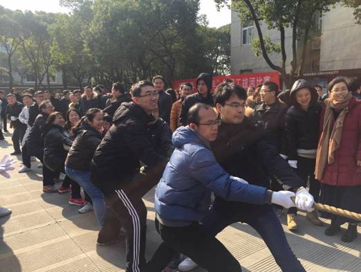 12月29日中午,校工会组织学校各分工会在安中大楼前举行“迎新年”拔河比赛。学院党委书记胡亚娥、分工会主席李浩明组织杨柳、姚乐彦、张晓婳、施晟、陈彬、王昕天、苏小松、闭明雄、靳来群、蒋鹏涛、余新平等学院教师积极参与此项活动。在首轮比赛中,电竞博彩 队一鼓作气轻松战胜潘天寿艺术学院队。第二轮比赛中,由于实力相差悬殊,最终不敌体育学院队。