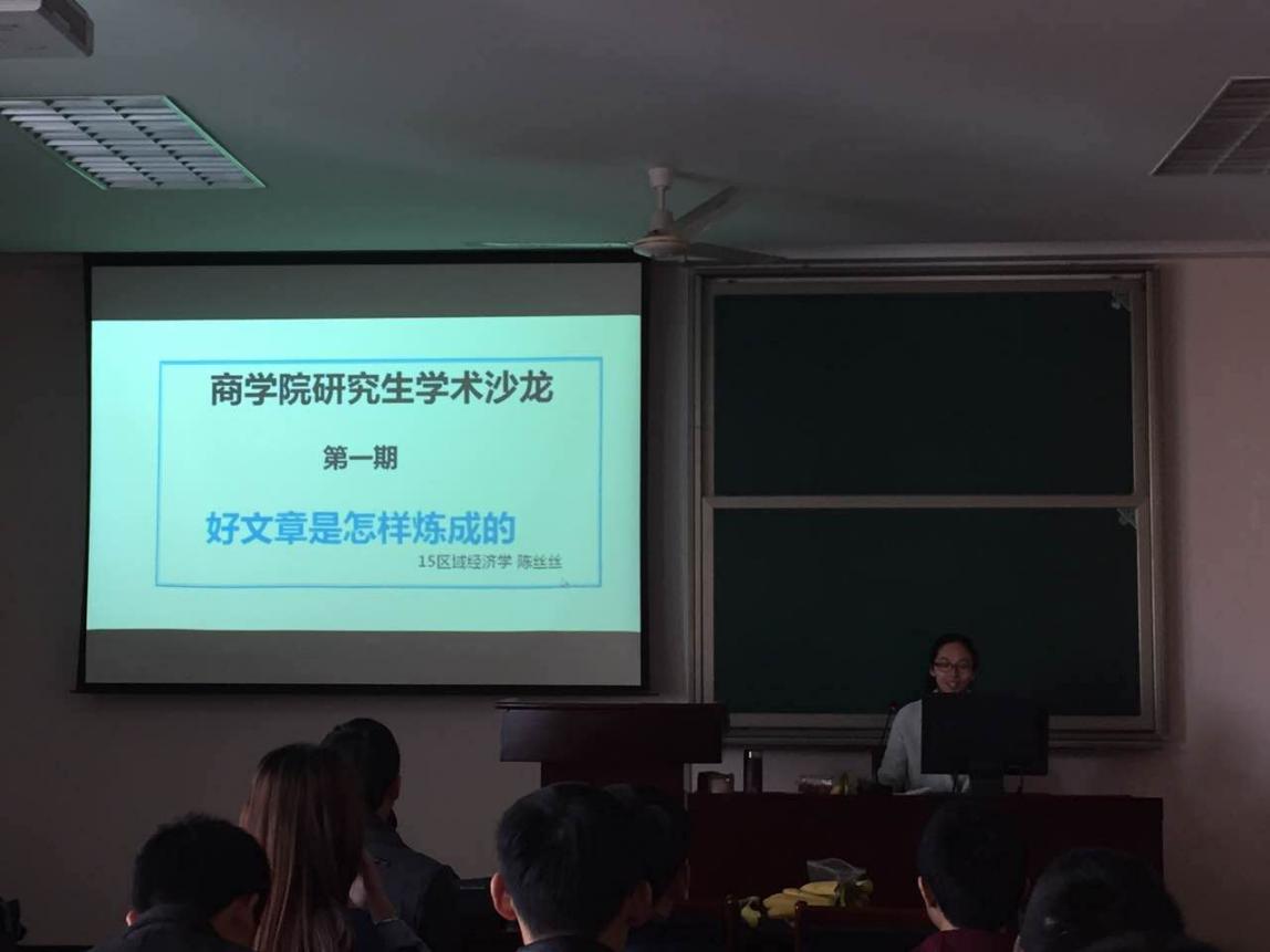 3月9日,我院2017年第一期“商硕争鸣”学术沙龙在11#418会议室顺利举行。15级区域经济学研究生陈丝丝做了主题为“好文章是怎样炼成的?”的学术交流会。16级部分研究生参与了本次学术沙龙。