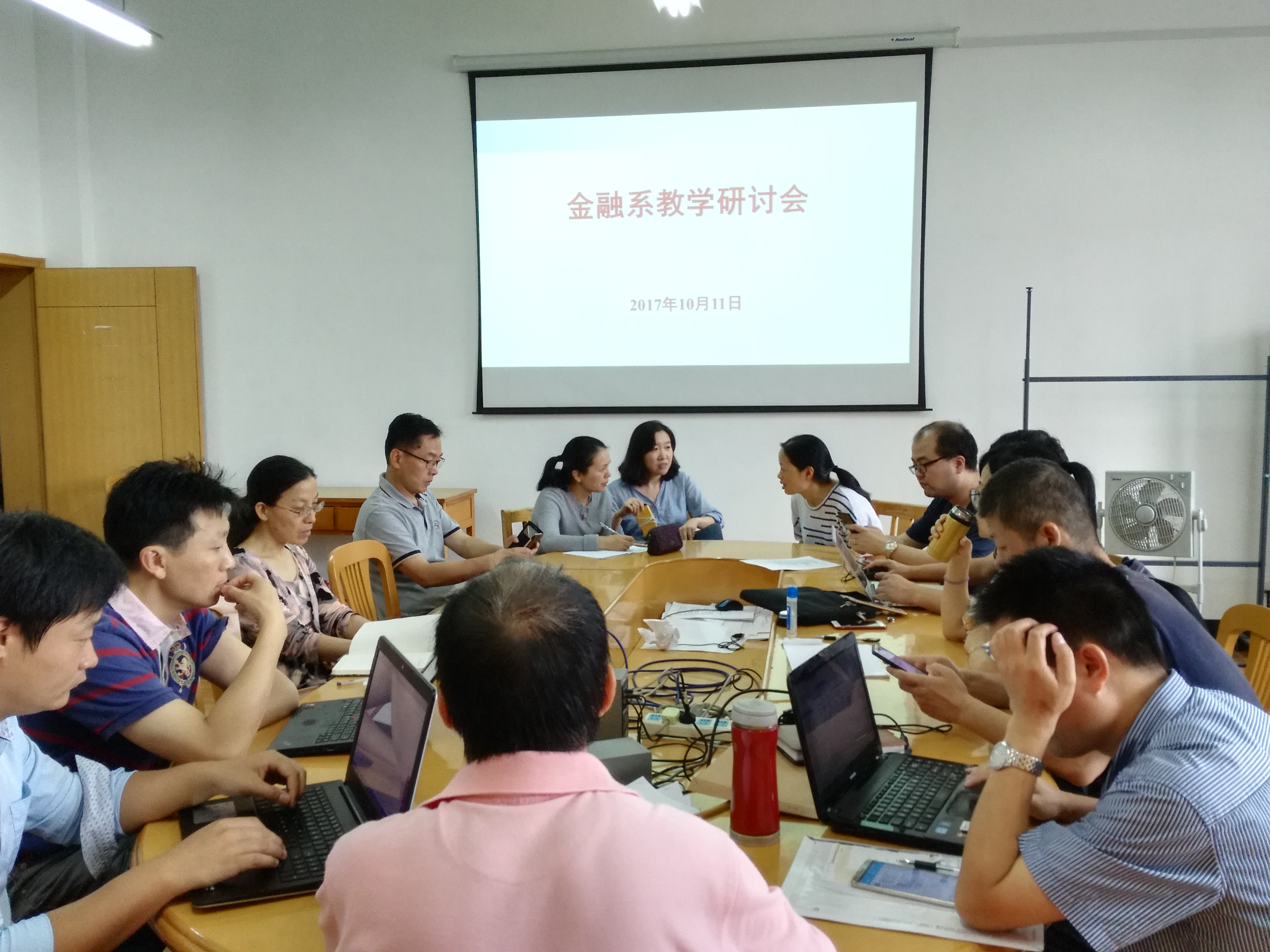 首先,刘慧宏主任详细介绍了金融学本科专业培养方案和教学大纲修订的工作要求,随后讨论确定了金融学专业的核心课程,即微观经济学、宏观经济学、金融学、保险学、证券投资学、财政学、国际金融、商业银行经营管理、金融市场学和公司金融。在此基础上,根据“谁授课,谁负责”的基本原则,各位老师(或各课程小组)承担了相关课程教学大纲的修订工作。此外,本次研讨会还对10月28至29日在我校举行的浙江省第三届“东方赢家同花顺杯”大学生证券投资竞赛团队赛决赛的筹备工作进行了安排。