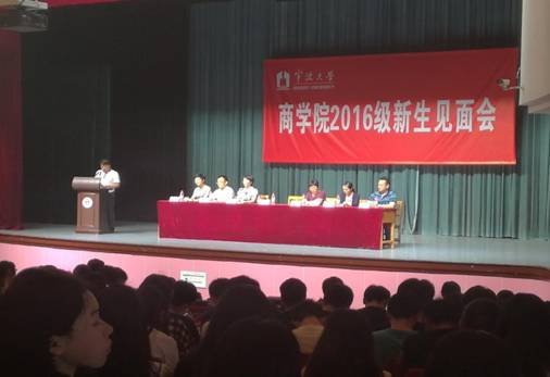 见面会上,范院长首先对2016级新生表示热烈欢迎,并与2016级同学分享三点感受:1.以商院为家,希望同学们用心呵护,建设商院,为商院添砖加瓦,共同努力让商院成为世界上让我们最为向往的地方;2.感悟商院精神,希望同学们既能具备“士”的操守和道德,又能养成“商”的才干与务实,成“士魂商才”之未来精英;3. 树立大爱情怀,希望同学们用一种积极的心态去爱自己、爱他人、爱宁大、爱世界。最后,范院长对同学们说,“宁大商院将塑造你们未来的人生,而你们将塑造宁大商院的未来!我对你们充满信心!”。范院长饱含激情的讲话赢得同学们阵阵掌声。