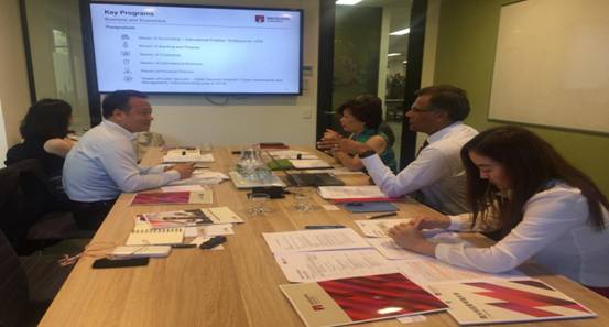 会谈中,双方就共同合作办学模式进行了沟通,针对我院学生完成本科阶段后,申请前往麦考瑞大学进行研究生阶段学习的3+2项目广泛的交换了意见,双方基本同意合作模式,合作细化将进一步探讨。
