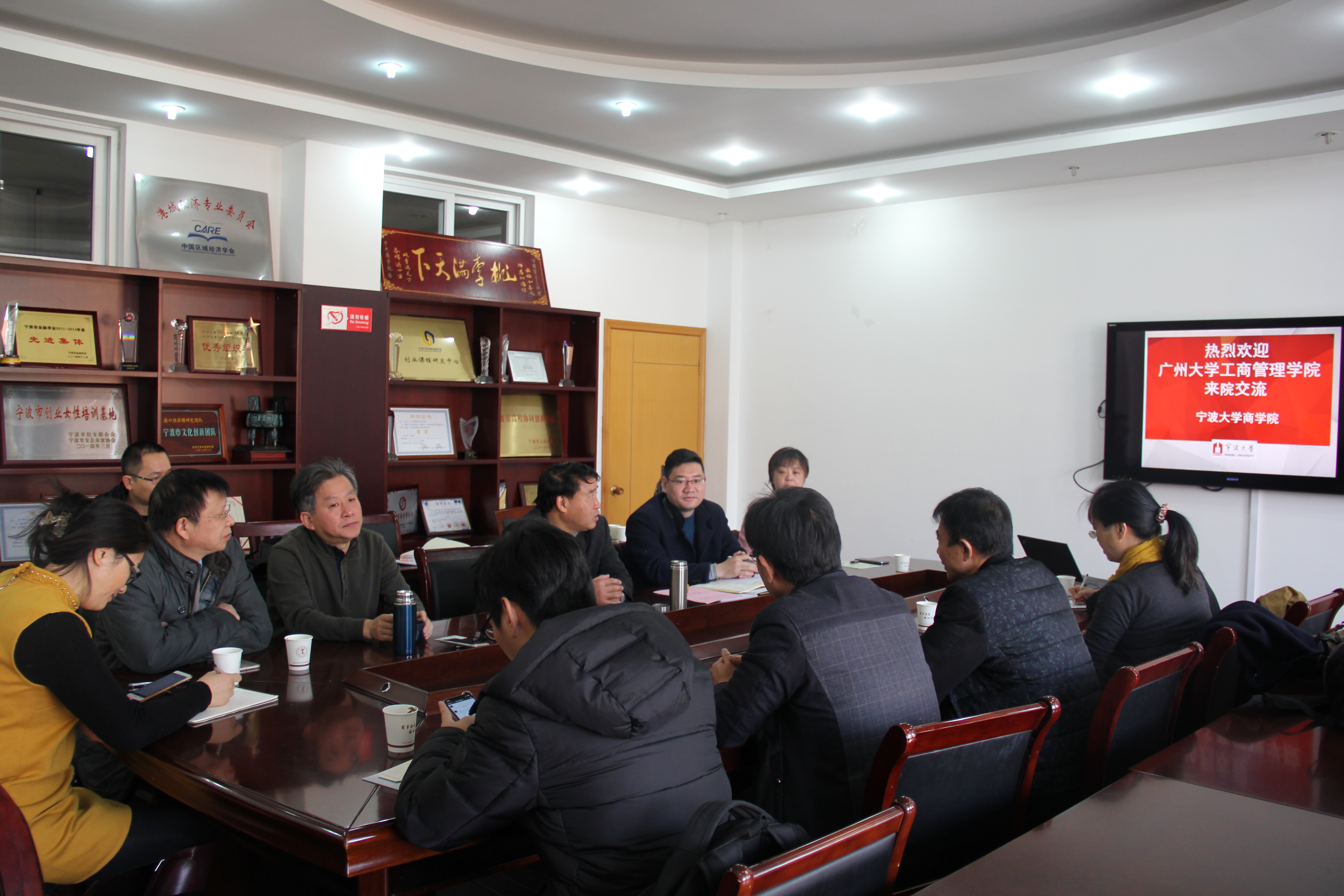 会上,范院长对王副院长一行到访表示热烈欢迎,并介绍了我院MBA教育的现状和发展思路。学位点负责人彭新敏介绍了宁波大学MBA中心工作的具体流程和方式。王其冬研究员和应志芳副教授作为我院MBA项目最早的负责人对我院MBA获得批准办学到正式开始招生等历史进行了回顾。张向群副教授作为曾经分管研究生工作的副院长也对MBA管理方面的经验进行了分享。最后,王学通副院长就本次交流对我院MBA的招生、管理,运作等方面进行了相关咨询。